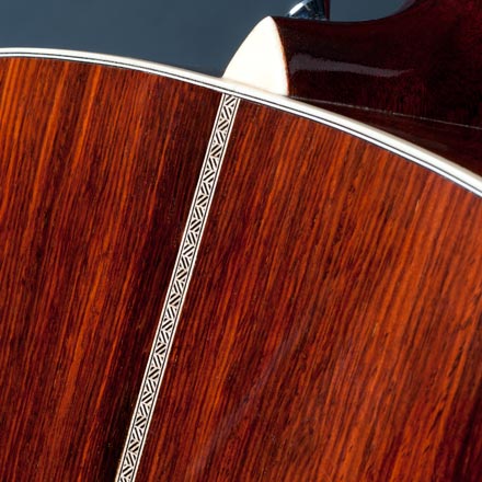 La bande de marqueterie en bois à motif « zipper », utilisée au joint central arrière des guitares Martin 28 et 21 avant la Seconde Guerre mondiale.