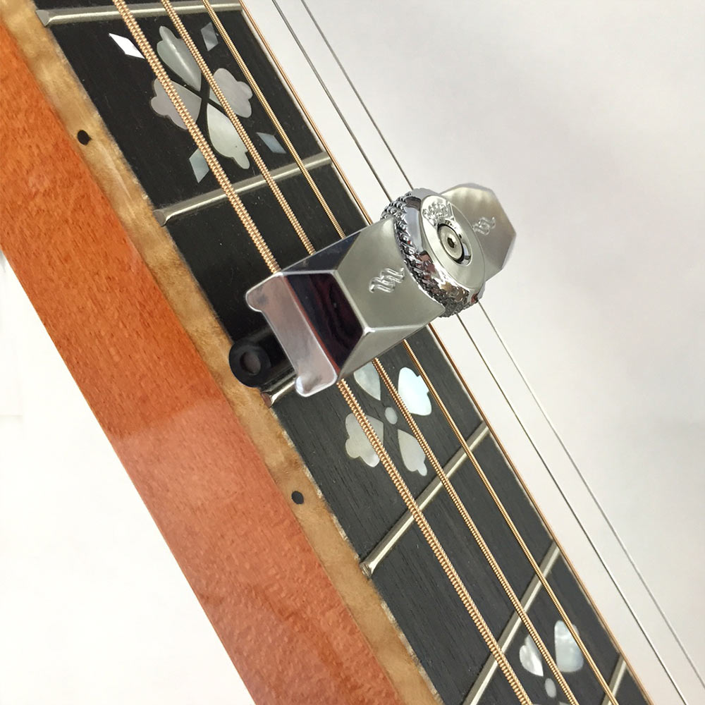 Un grand interrupteur de tension de précision facilite le réglage d’une seule main. Convient aux résonateurs à manche carré à 6 et 8 cordes.