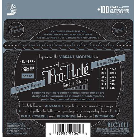 Découvrez le ton vibrant, projeté et contemporain des cordes en carbone Pro-Arté de D’Addario. Conçues selon les spécifications rigoureuses de nos aigus en nylon Pro-Arté, nos cordes en fluorocarbone offrent une intonation supérieure inégalée, une attaque réactive et un ton projeté moderne. Associées aux basses Dynacore audacieuses et puissantes, les carbones Pro-Arté offrent la combinaison idéale de tension et de ton pour le joueur classique d’aujourd’hui.- Intonation supérieure avec une attaque réactive et un ton moderne projeté