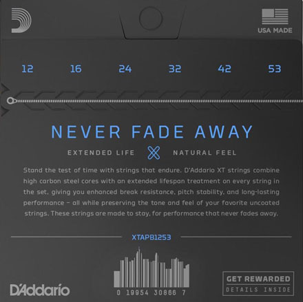 « Tenez-vous à l’épreuve du temps avec des chaînes qui durent. LES CORDES D’ADDARIO XT COMBINENT DES NOYAUX EN ACIER À HAUTE TENEUR EN CARBONE AVEC UN TRAITEMENT DE DURÉE DE VIE PROLONGÉE SUR CHAQUE CORDE DU SET, VOUS OFFRANT UNE RÉSISTANCE À LA RUPTURE AMÉLIORÉE, UNE STABILITÉ SUR LE TERRAIN ET DES PERFORMANCES DURABLES, TOUT EN PRÉSERVANT LE TON ET LE TOUCHER DE VOS CORDES NON REVÊTUES PRÉFÉRÉES. Ces cordes sont faites pour durer, pour des performances qui ne s’estompent jamais. »