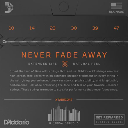 D’Addario XT associent la longue durée de vie des cordes revêtues au ton et au toucher familiers de vos cordes non revêtues préférées.