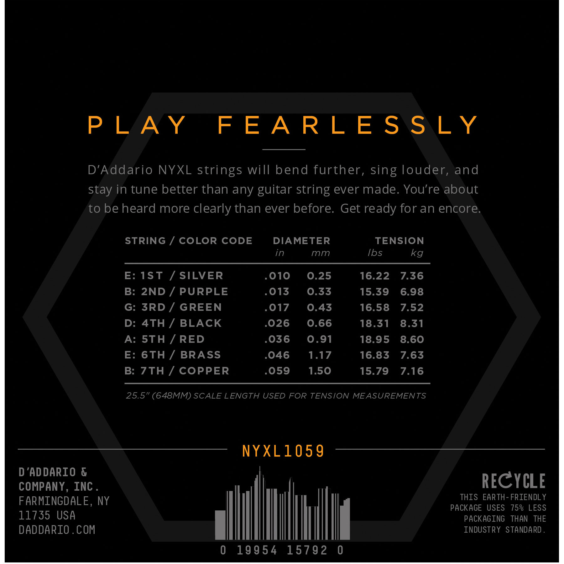 Chaînes de guitare électrique à 7 cordes en nickel D’Addario NYXL