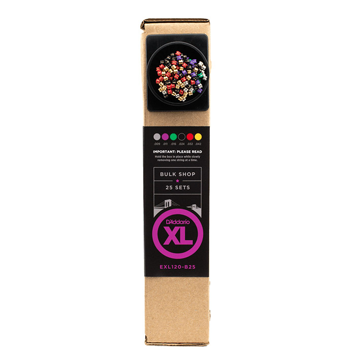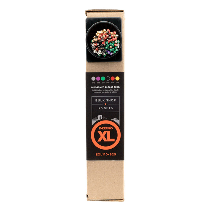 Cette boîte pratique propose les ensembles de cordes de guitare électrique les plus vendus de D’Addario : un accès facile à 25 ensembles complets de cordes à un prix de gros.