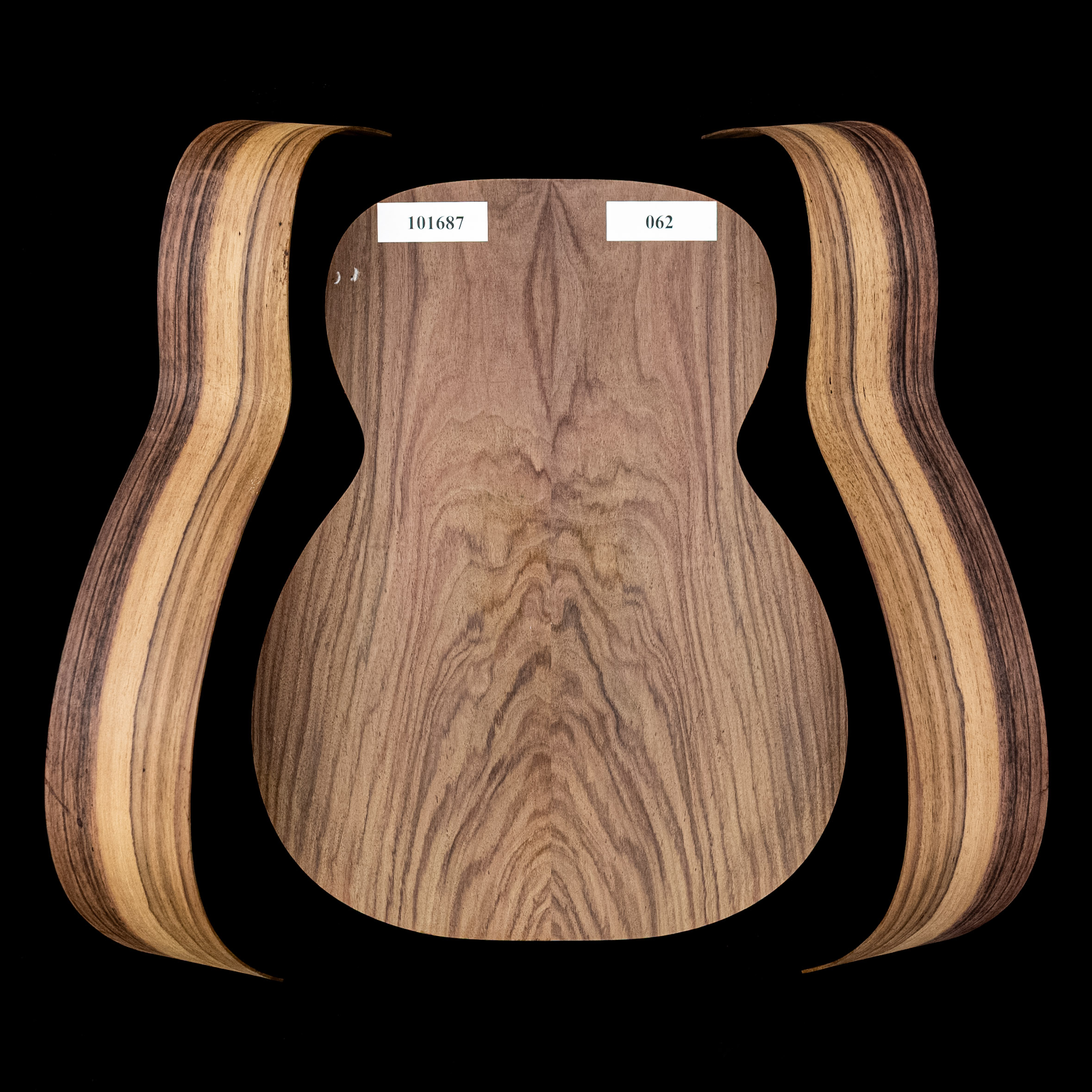 Fond assemblé + Paire d’éclisses cintrées en palissandre d’Inde Wild Grain pour guitare OM - 062