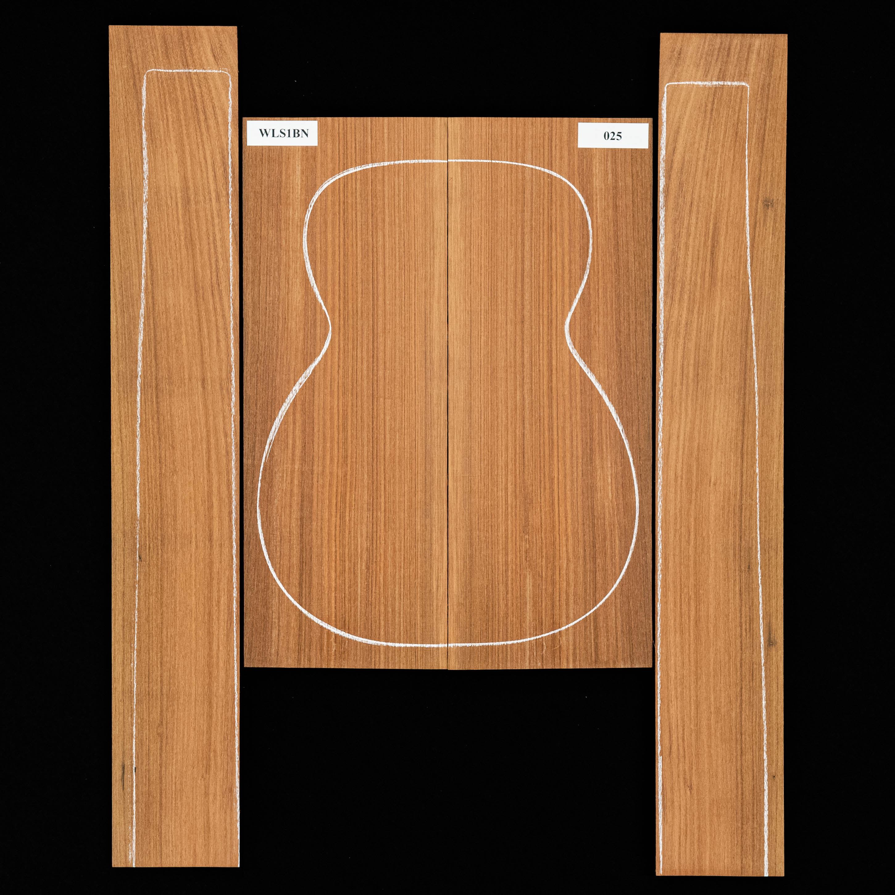 Chaque ensemble de livres assortis à l’arrière et sur les côtés est prêt pour que vous commenciez votre construction. Lorsqu’elles sont jointes, elles sont assez grandes pour une guitare de taille OM ou plus petite. Les côtés ne sont pas profilés (rectangulaires) et ne sont pas pliés. Séché au four.