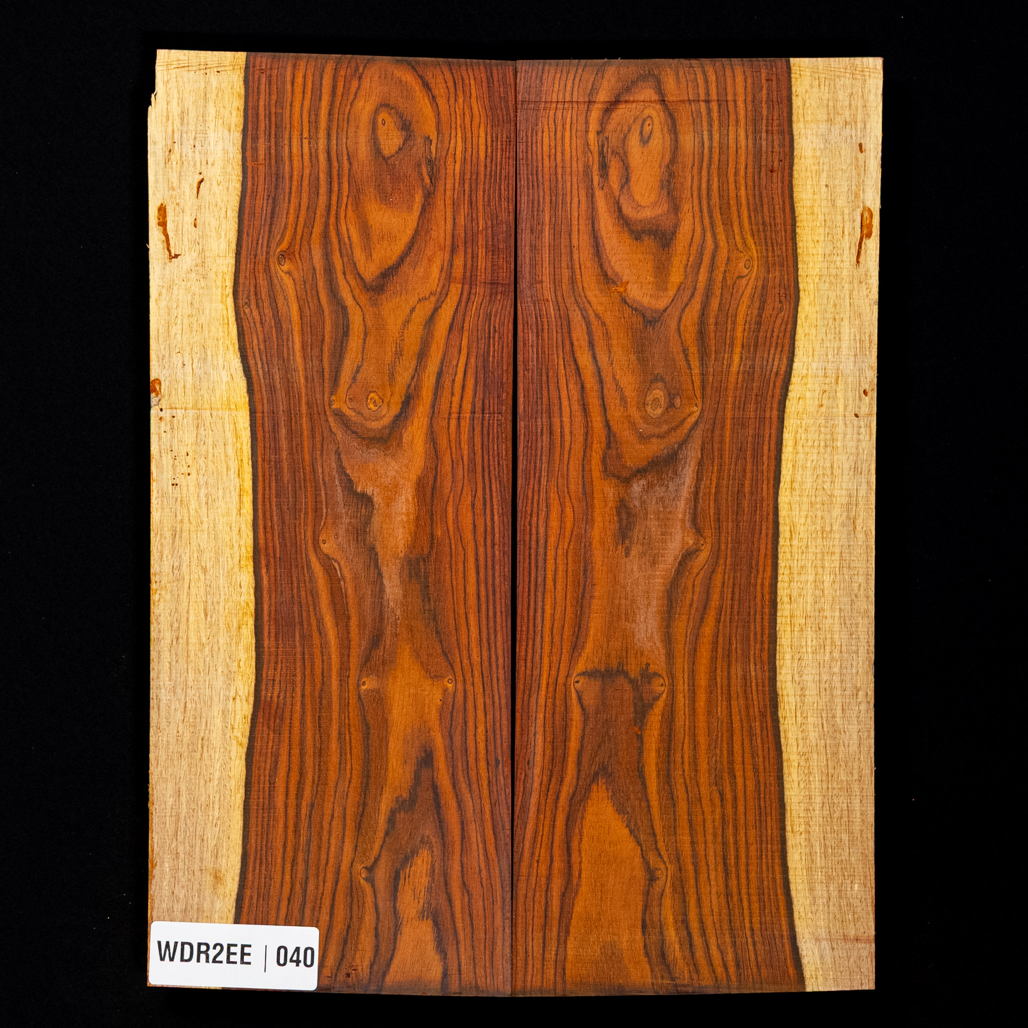 Si vous aimez l’aspect du palissandre, mais souhaitez quelque chose de plus saisissant visuellement, Cocobolo est le bon choix. Avec des couleurs allant du rouge vif, de l’orange, du bordeaux et parfois presque du noir et des motifs de grain qui vont de simples et droits à tourbillonnants et sauvages, il est facile de trouver le look parfait pour votre construction.