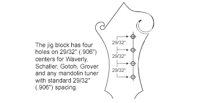 Le gabarit de perçage Mandolin Tuner est conçu pour percer des trous de chevilles espacés avec précision de 1/4 po de diamètre pour installer des machines de réglage modernes de la mandoline. Ce gabarit de forage peut également être utilisé pour moderniser les mécaniques modernes sur les mandolines plus anciennes. |