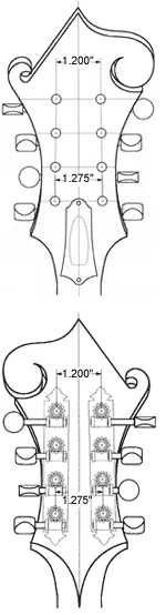 Instructions d’installation du tuner à l’aide du gabarit de perçage Mandolin Tuner.