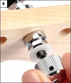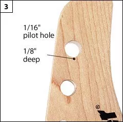 3. Retirez le tuner et percez un trou pilote de 1/16" de 1/8" de profondeur. L’ajustement sera ajusté, mais sera serré une fois l’installation terminée. |