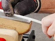 Pour retirer plus de matériaux plus rapidement, utilisez des limes grossières et moyennes. Les fichiers à double coupe fonctionnent mieux. Veillez à ne pas marbrer le bois (ou la finition en cas de réparation). Arrêtez-vous avant que la binding ne soit au même niveau que le bois environnant et terminez le travail avec un grattoir.