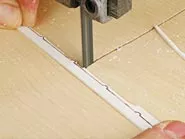 Les joints bout à bout sont également simples à faire avec les bindings en bois. Tous les éléments doivent être propres dans ce travail de collage : les extrémités de binding , le canal, la colle, le ruban adhésif et vos mains. Assurez-vous que les extrémités de la binding sont coupées très carrément.