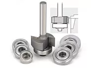 Notre ensemble de trépans de routeur de liaison utilise une fraise à pointe en carbure avec des roulements interchangeables pour créer des canaux pour plusieurs largeurs de binding de 0,040 po à 0,210 po. Tous nos roulements sont maintenant dimensionnés pour une profondeur de coupe exacte. N’oubliez pas de laisser les fibres de bois gonfler par le collage, ainsi que par l’épaisseur de la colle elle-même. La binding plastique collée gonfle considérablement lorsqu’elle absorbe les solvants de colle. Les bindings en bois collées avec des colles à bois contenant de l’eau gonfleront également. Pour minimiser le grattage final et le ponçage, nous recommandons d’installer d’abord une courte longueur de binding sur le bois de ferraille acheminé, afin de tester l’ajustement.
