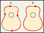 Après avoir réalisé ces quatre coupes, faites une coupe longue autour de toute la guitare en vous déplaçant dans l’autre direction, Diagramme B. Étant donné que les quatre premières zones sont déjà coupées, le routeur ne rencontrera pas de points de déchirure probables sur ce passage long.
