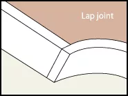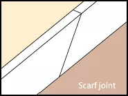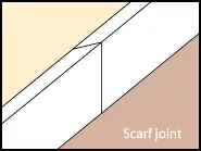 Les joints d’écharpe sont des surfaces de contact inclinées et peuvent être un bon moyen de cacher un joint, car la ligne de colle ne coupe pas les lignes de binding à un angle droit. Un joint foulard est également un bon moyen de joindre deux pièces de binding bout à bout pour former une bande plus longue. Les joints de l’écharpe peuvent être inclinés en haut ou sur le côté de la bande de binding.