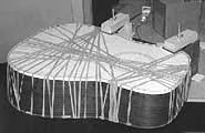 La solution la plus simple consiste à employer des fileteries pré-laminées plutôt que d’assembler soi-même des bandes noires et blanches, mais rien n’empêche de concevoir vos propres laminés originaux. Le gabarit Stewart-MacDonald pour la lamination de filets rend cette étape beaucoup plus simple, et il est livré avec un mode d’emploi détaillé. Pour les besoins de cette introduction au binding, nous supposerons que vous utilisez des filets prêts à l’emploi. [Une remarque : si vous décidez de créer vos propres effets en combinant des bandes, il est préférable de les plastifier en une seule pièce avant de les installer. Cela vous évite beaucoup de difficultés à essayer de plier et de coller plusieurs pièces distinctes, chacune ayant son propre esprit !]
