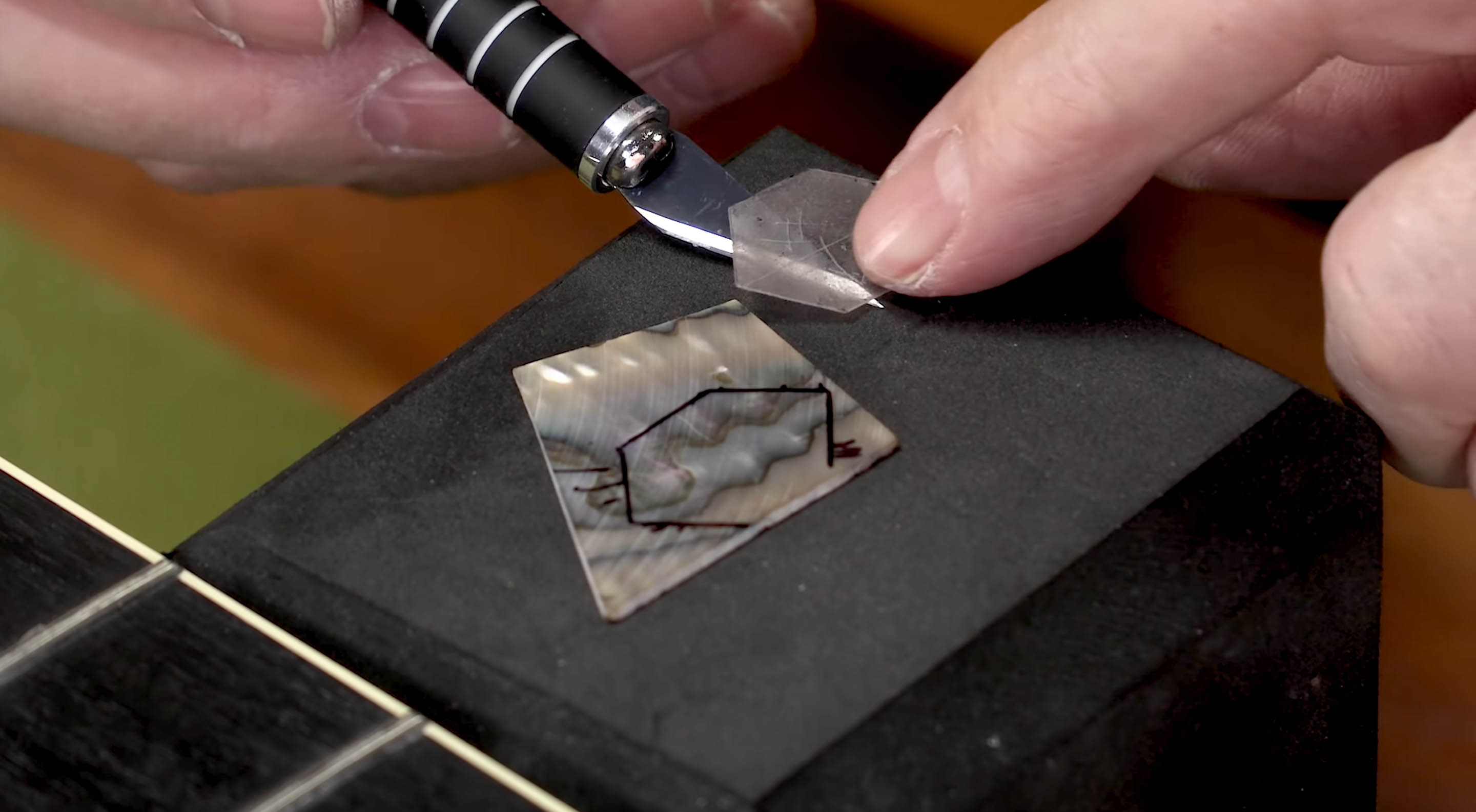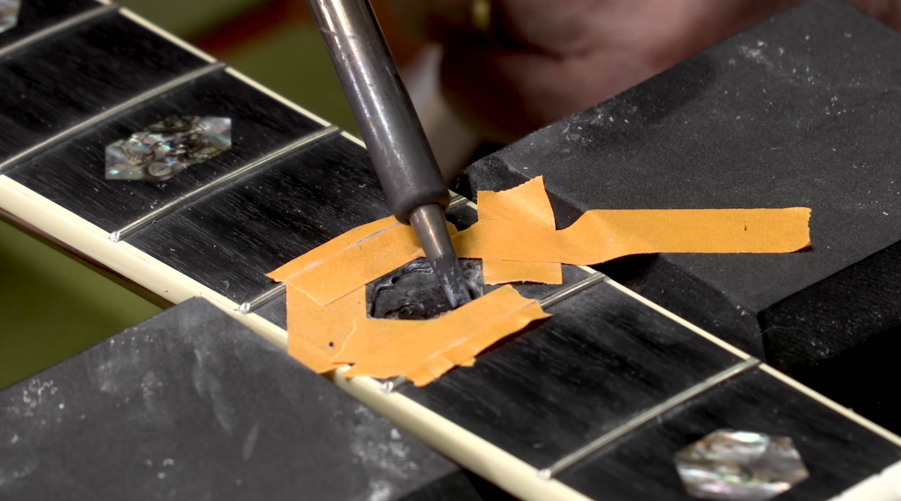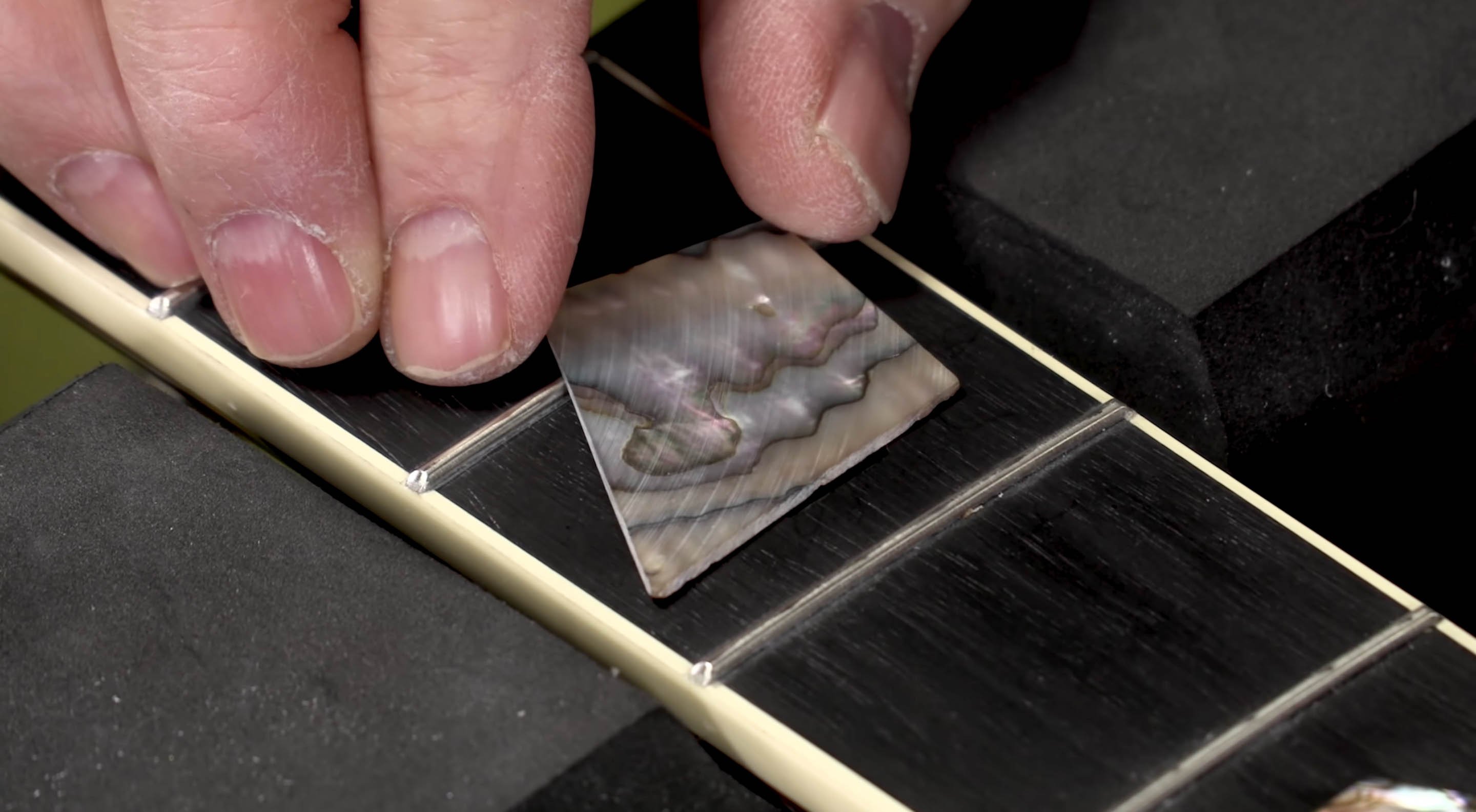 Avez-vous déjà voulu réparer ou remplacer une incrustation en carton sur votre guitare ? Dan Erlewine s’attaque à ce projet dans cette vidéo. Il remplace une incrustation d’ormeaux sombres d’un Martin D-45 par un morceau de coquillage plus lumineux et plus coloré.