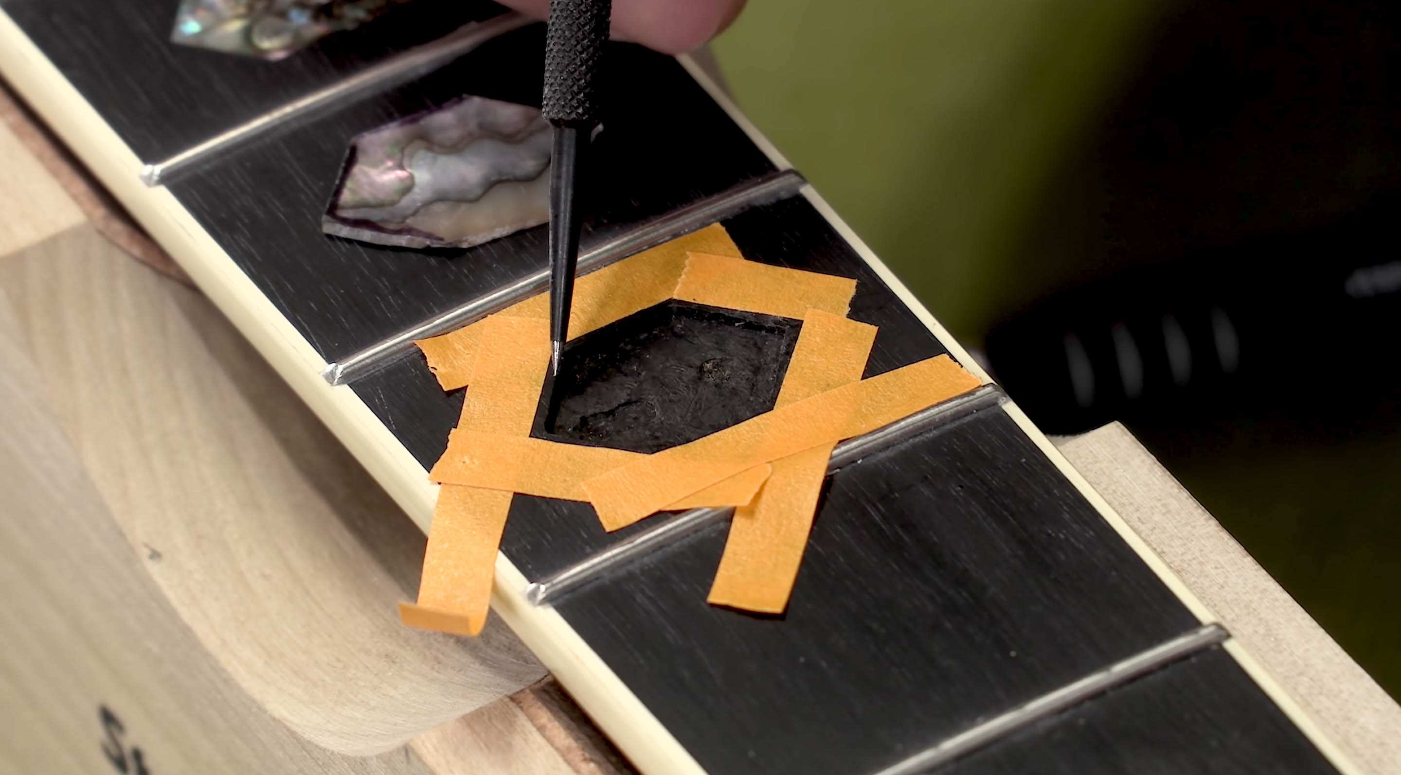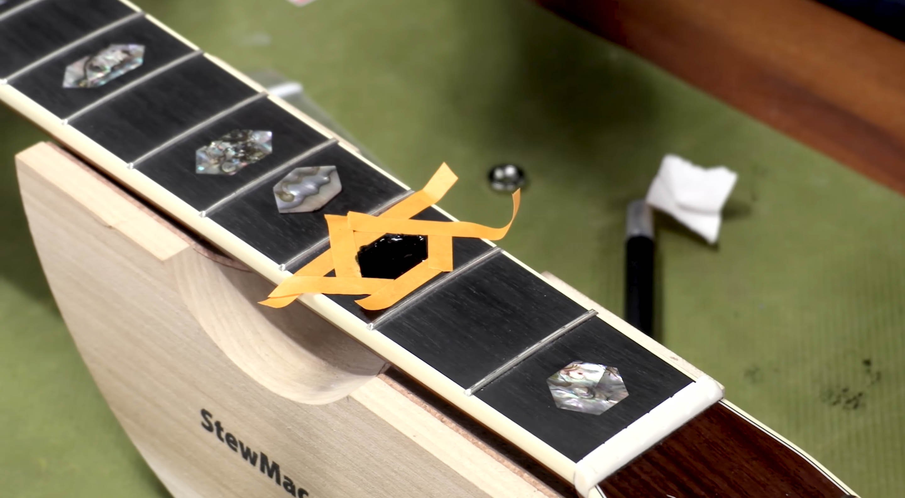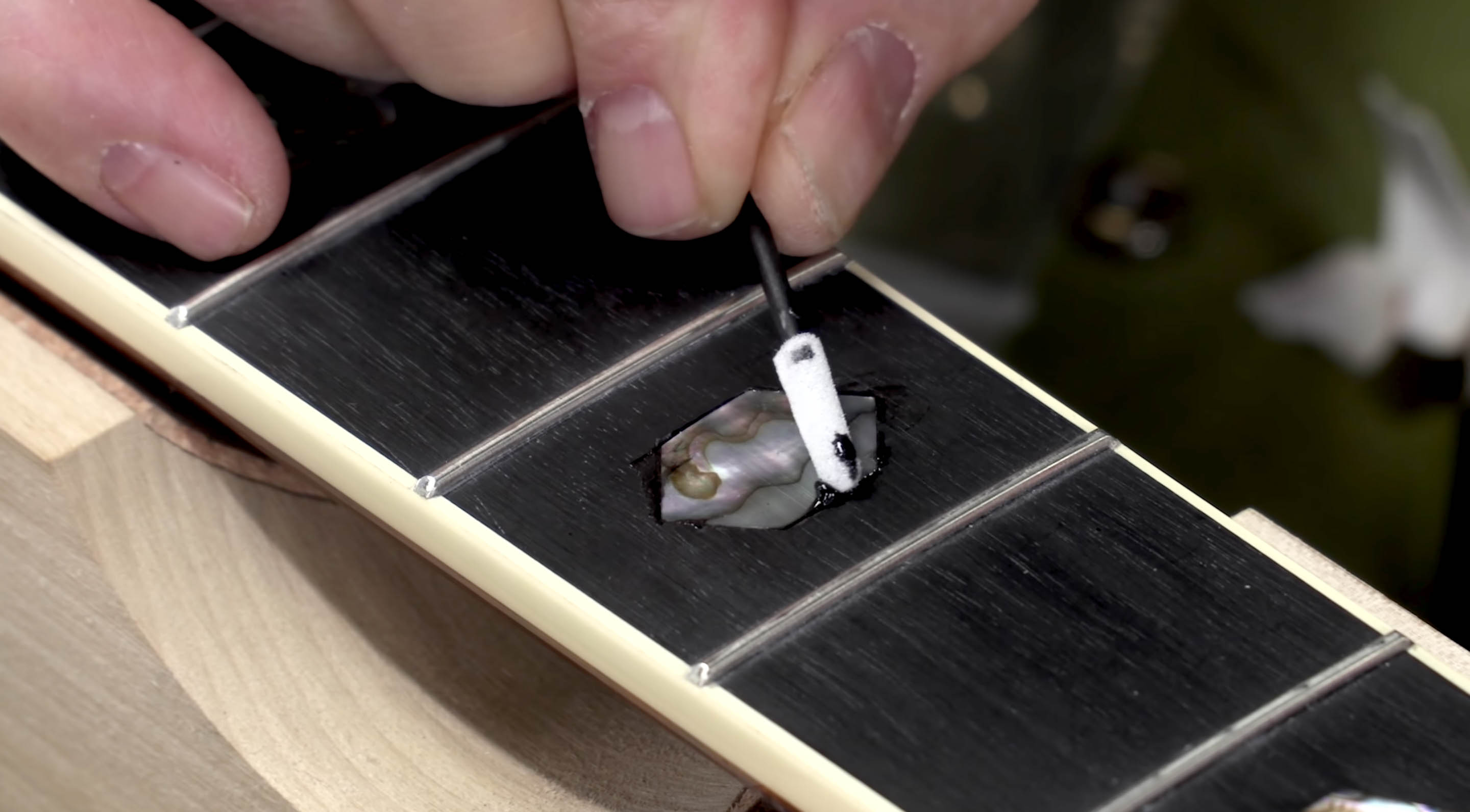 Avez-vous déjà voulu réparer ou remplacer une incrustation en carton sur votre guitare ? Dan Erlewine s’attaque à ce projet dans cette vidéo. Il remplace une incrustation d’ormeaux sombres d’un Martin D-45 par un morceau de coquillage plus lumineux et plus coloré.