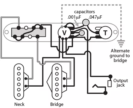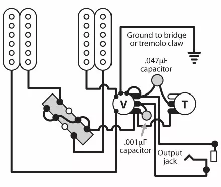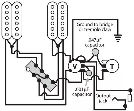 Ce schéma de câblage convient à toute guitare à deux pickup avec humbuckers, bobines uniques ou une combinaison des deux.
