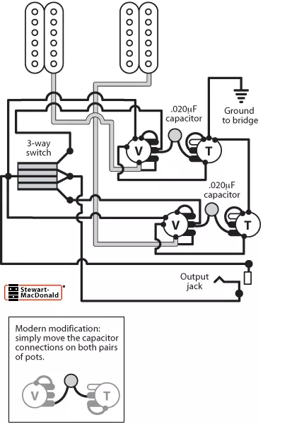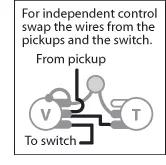 Autre câblage de contrôle du volume : vous pouvez fil les deux contrôles du volume d’un appareil Les Paul (ou tout autre instrument de contrôle du volume double) afin de pouvoir mélanger le volume des capteurs indépendamment. Cela résout le problème en position centrale du sélecteur où le fait de baisser une commande de volume affecte les deux capteurs.