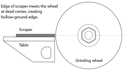 Augmentez la vitesse du broyeur à environ quatre heures et affûtez votre grattoir avec un mouvement continu et fluide sur la meule.